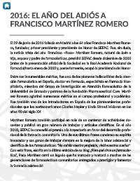 El 29 de junio de 2016 fallecía en Madrid a los 64 años Francisco Martínez Rome-